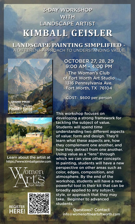 Join me at the Grand Hall Terrace NRH Centre – North Richland Hills, Texas for an in-person 3 day painting workshop August 21st – 23rd!